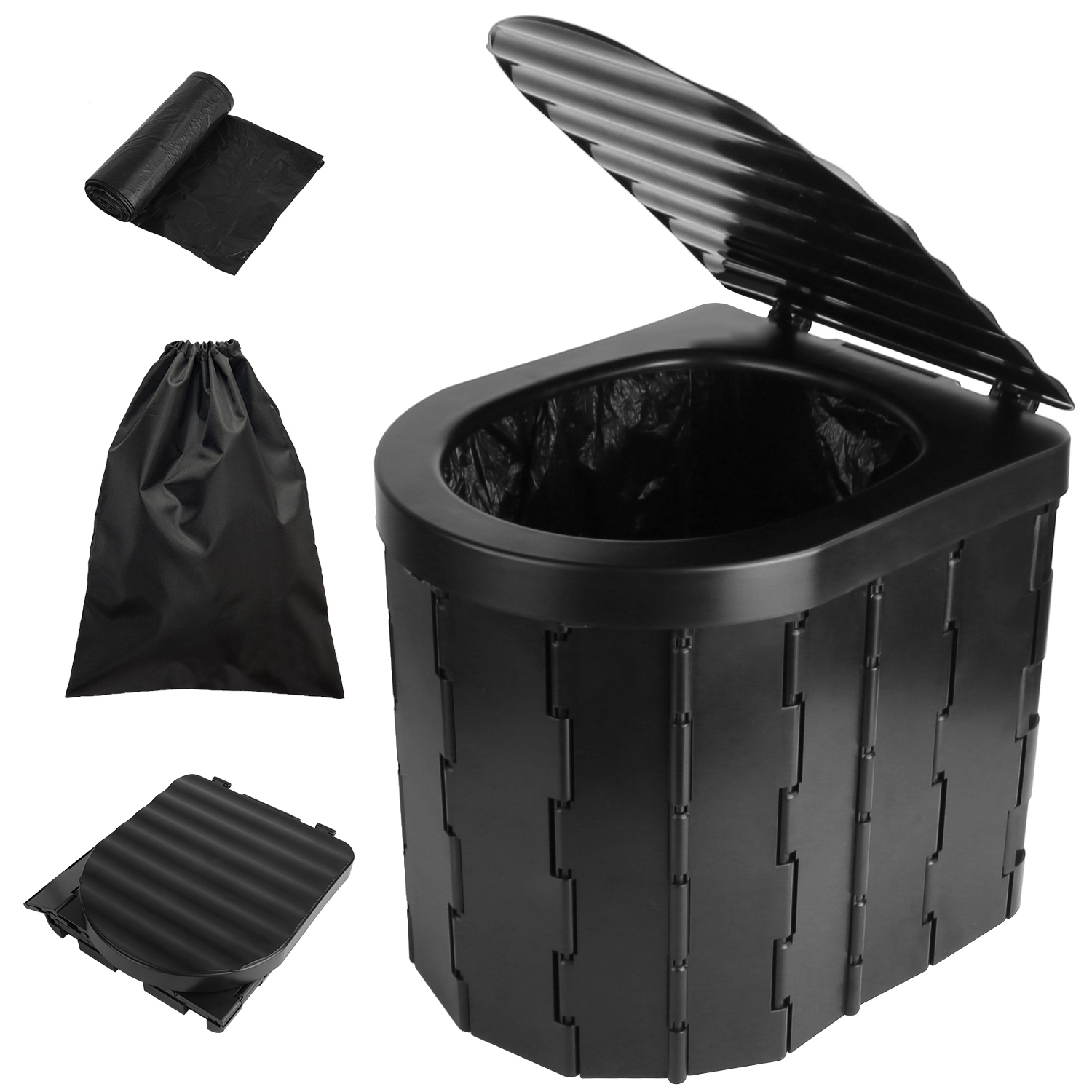 Foldable Emergency Toilet Portable Porta Potty for Car Travel Camping Boating Hiking Cleanable Travel Commode with Lid Carry Bag 1 Roll Garbage Bags
